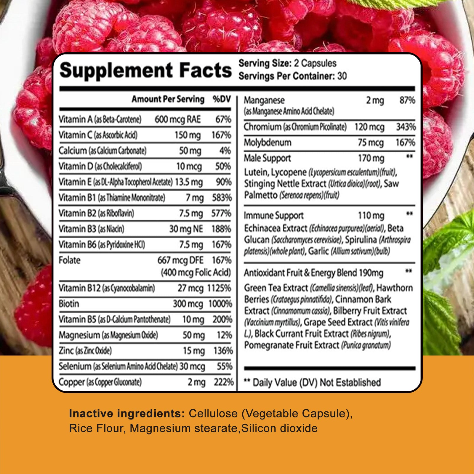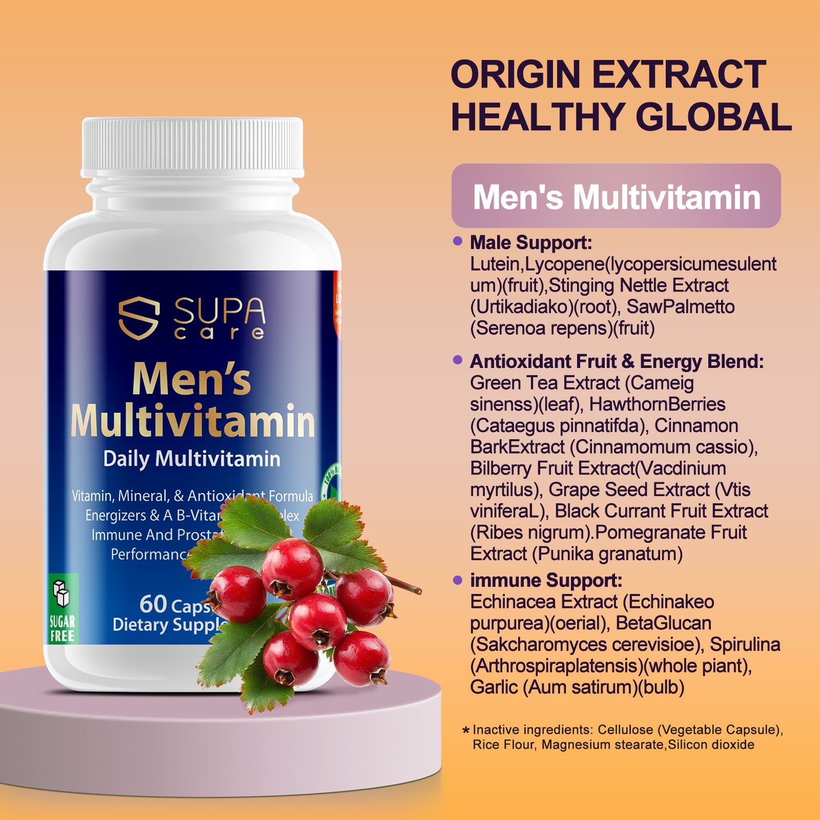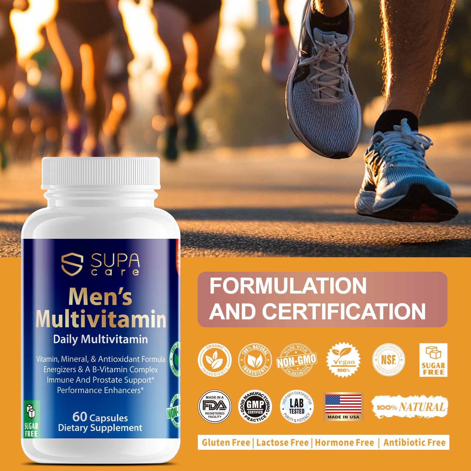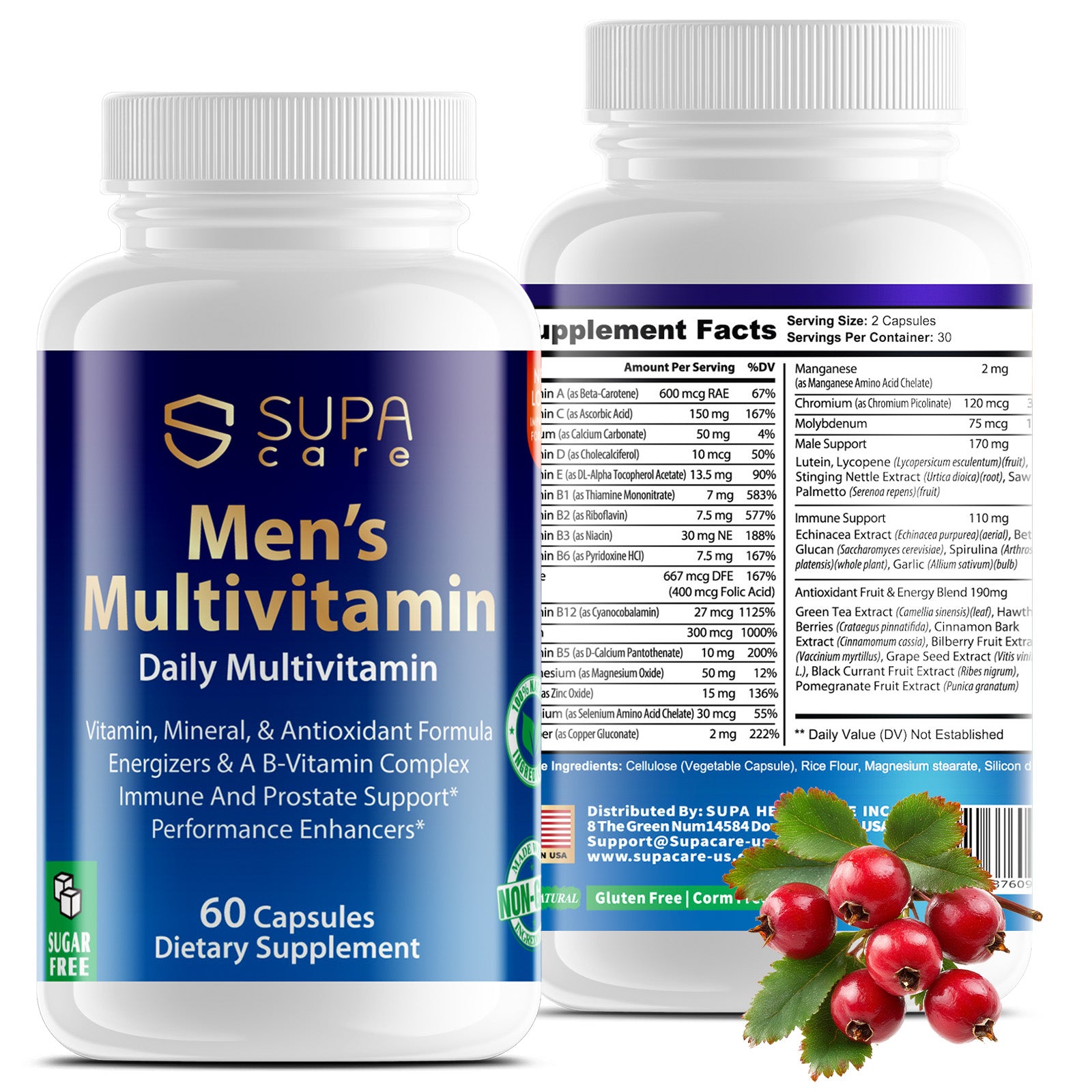 Supa Care Men's Multivitamin – Complete Health Support with Vitamins, Minerals & Antioxidants | Energy, Immunity & Prostate Wellness Formula | Non-GMO, Sugar-Free, Gluten-Free | 60 Capsules